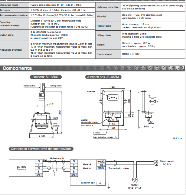 日本jfe污水用浸没式液位探测器型号 SL-180C