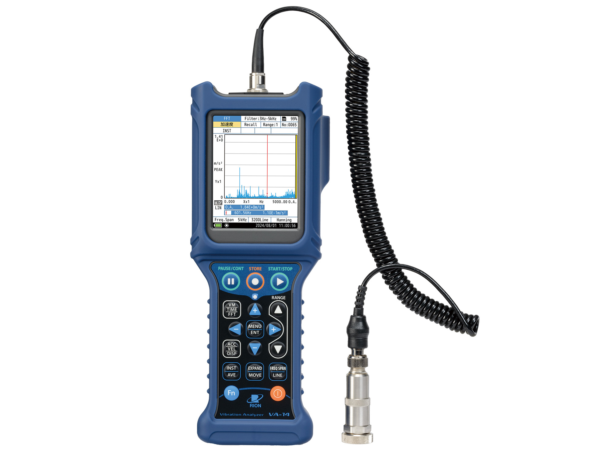 VA-14是一款手持式振动分析仪,可进行单通道FFT分析。其测量功能包括振动计功能、时域波形功能和频率分析功能。该仪器配备USB接口和LAN接口,可通过连接外部通信设备作为固定式测量仪器使用,无需现场直接操作,也可集成到其他系统中。